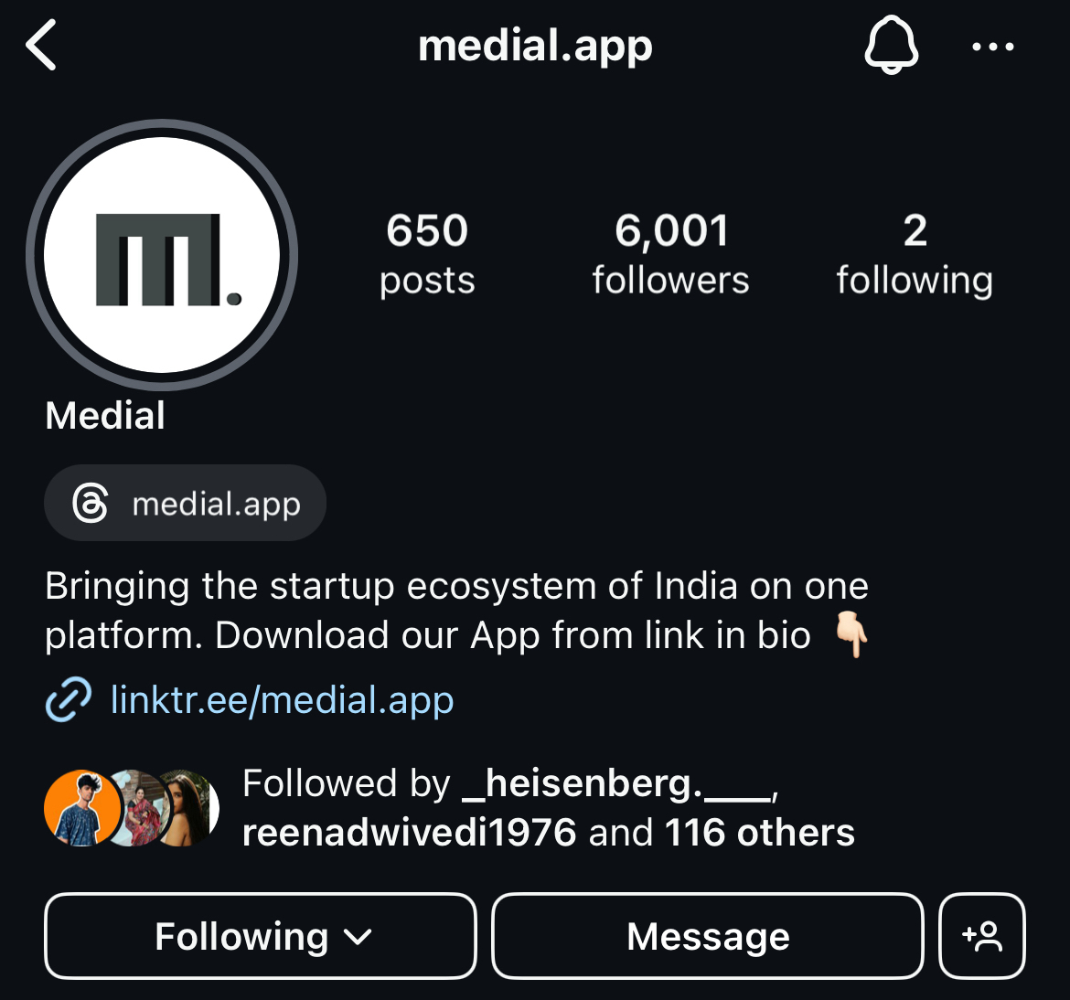 Medialās Instagram page crossed 6000+ followers ā¤ļøš https://instagram.com/medial.app