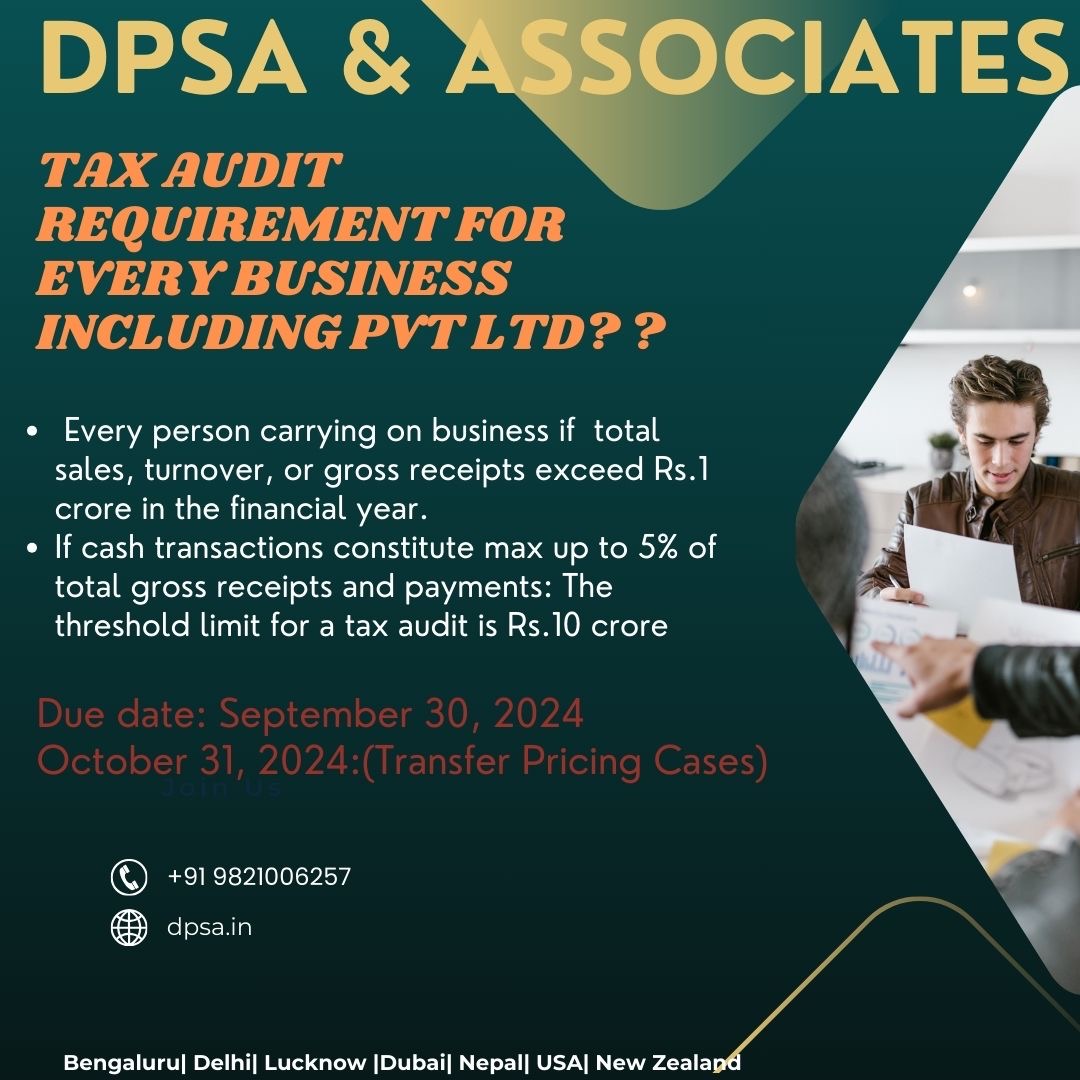 Dear business๐ please note your tax audit applicability โก๏ธEvery business, including private limited companies, individuals, and partnership firms (excluding those opting for the presumptive taxation scheme), is subject to a tax audit ifTotal sale