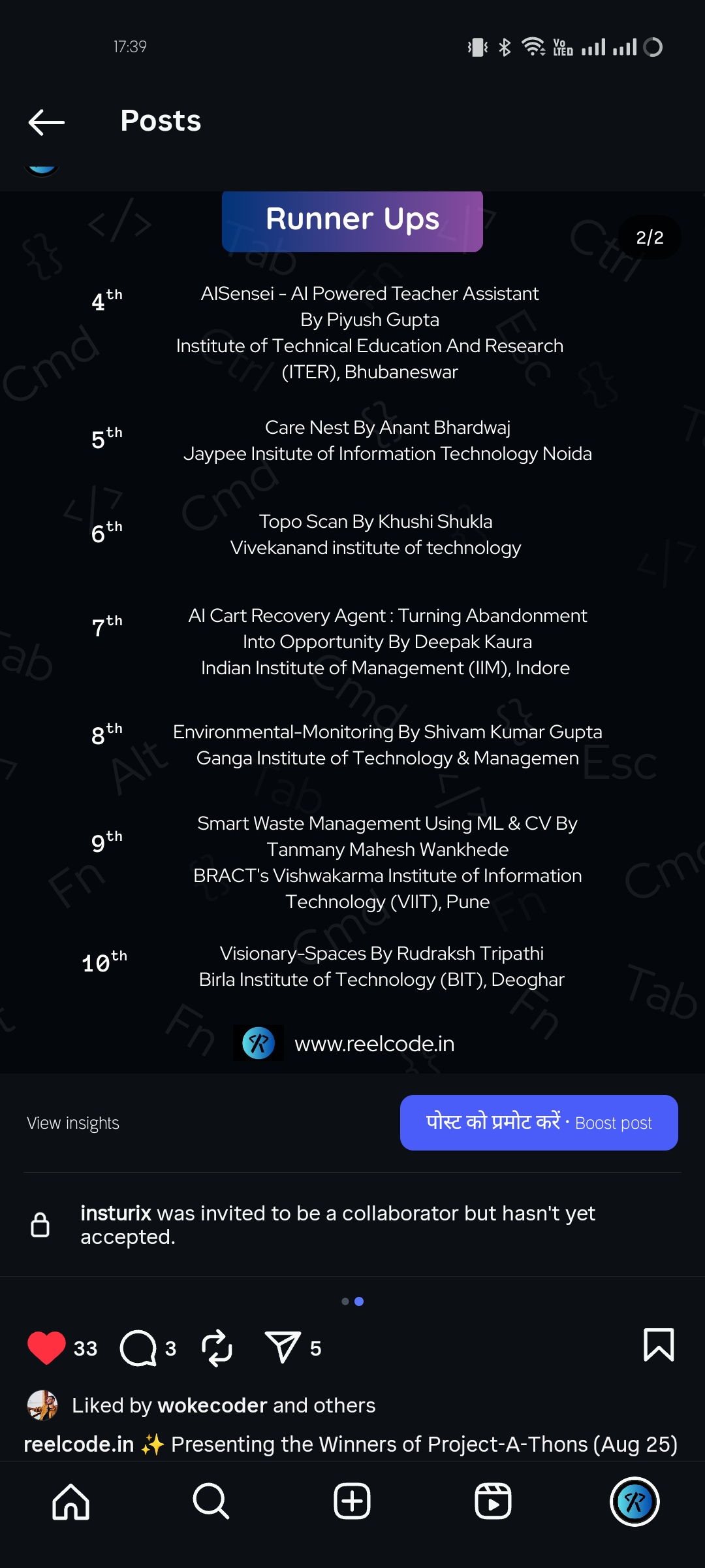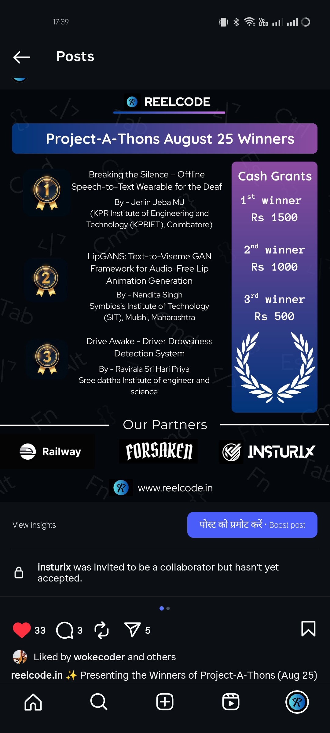 hi everyone , On Reelcode we just wrapped with our August Project-a-thons 25 with 500+ registrations and submission of the tech projects of different students from all over india we are moving step by step Join us On Reelcode developers/coders www.