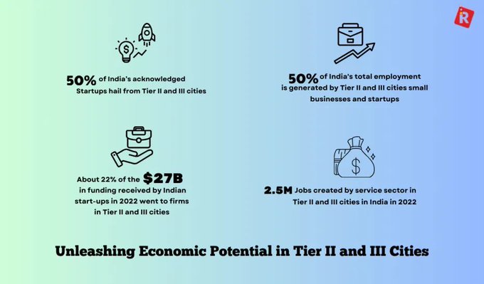 Tier 2 and tier 3 cities in India are becoming significant hubs for startups, approximately 45% of the country's recognized startups ~ DPIIT