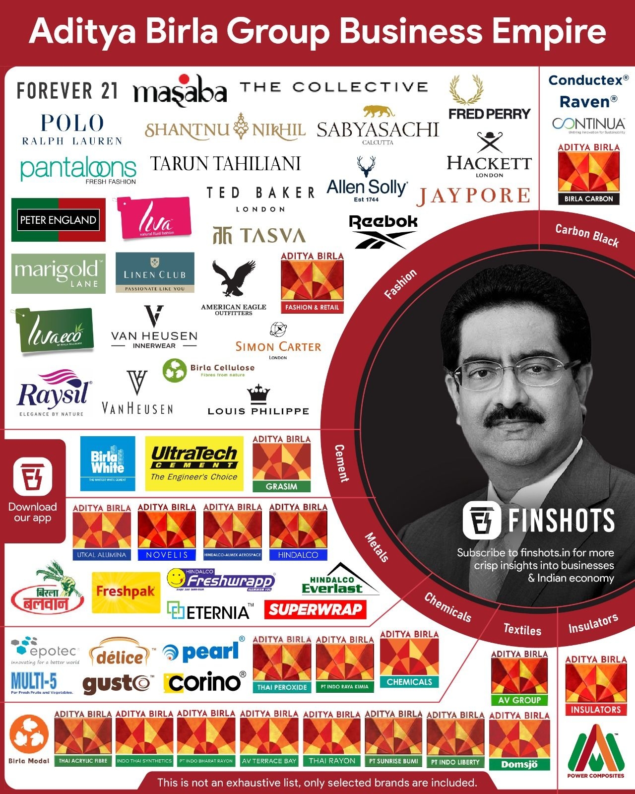 The Aditya Birla Group has achieved a market valuation of $100 billion. The group's portfolio includes UltraTech Cement, Grasim, Hindalco, Aditya Birla Capital, Aditya Birla Sun Life AMC, Vodafone Idea, Aditya Birla Fashion & Retail, TCNS Clothing,