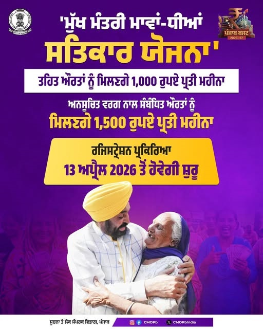 The Government of Punjab has taken an important step towards strengthening women’s financial independence with the announcement of the Mukh Mantri Mawan Dhian Satikar Yojna. The scheme was announced on 8 March 2026 during the state budget presentati