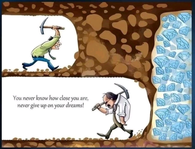 This Image is showing wrong moto. let me explain... See in our life, we don't know where is our Diamond and how much deeper we have to dive to get that. Image showing the perspective of 3rd person, in our case which is God. We don't know, How can we know, the path we're going is the correct one? What if? the path we're going is wrong and we don't about it and we continue diving?