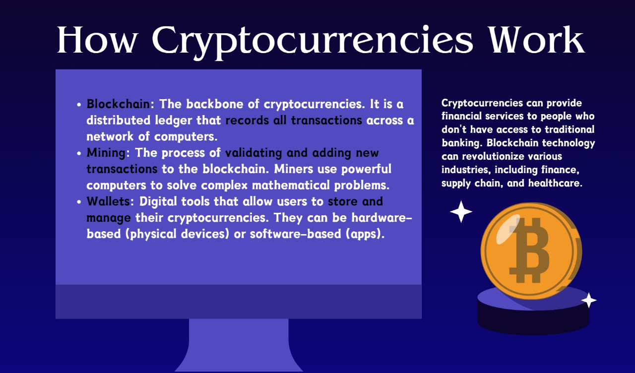 Here is my recent study about the world of Cryptocurrency! Yeah , it's really cool to know about this side of the world This topic intrigued me when I got to know about the hot topic among world leaders is Cryptocurrency and blockchain technology. Recently American presidential election 2024 , one of the agenda includes to make USA as Cryptocurrency capital quoted by Former American president Donald trump. So I decided to dig in about it and present it for someone who can easily understand. Cryptocurrency represents a significant shift in how we think about money and financial transactions. While there are challenges and risks, the potential benefits and ongoing technological advancements make it an exciting area to watch. The future of cryptocurrency will likely involve greater adoption, improved technology, and clearer regulations, paving the way for a more inclusive and innovative financial system.