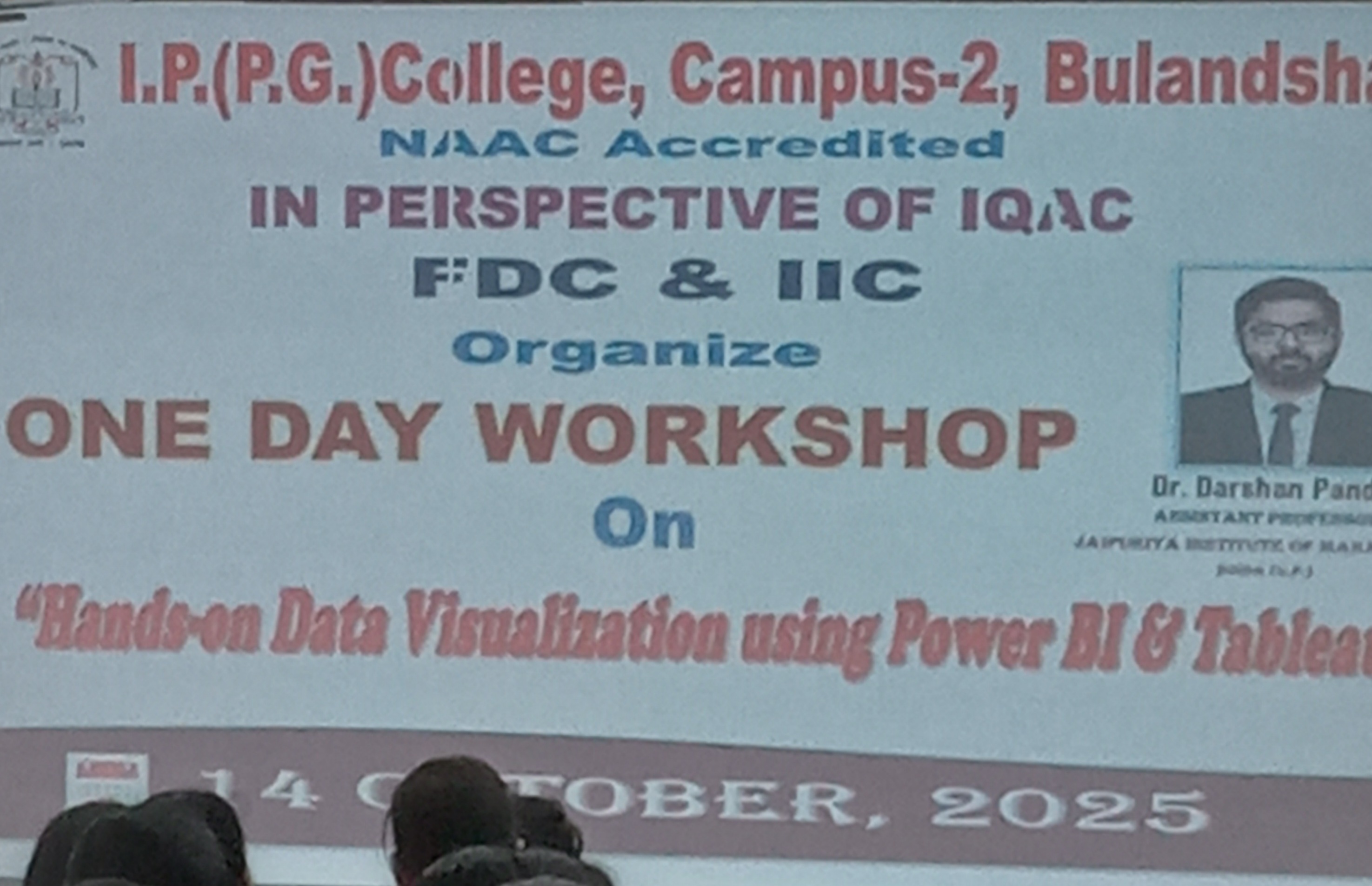 Thrilled to attend a One-Day Workshop on “Hands-on Data Visualization using Power BI & Tableau,” organized by I.P.(P.G.) College, Campus-2, Bulandshahr, under the perspective of IQAC, FDC & IIC. A highly insightful session led by Dr. Darshan Pandey,