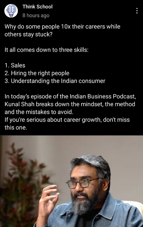 it's Sunday again and you have pick one of these - learn , hustle , build , make most out of it - give yourself a break , recharge yourself for the week what you're doing ? I'm watching this podcast of kunal shah on think school now but one hig