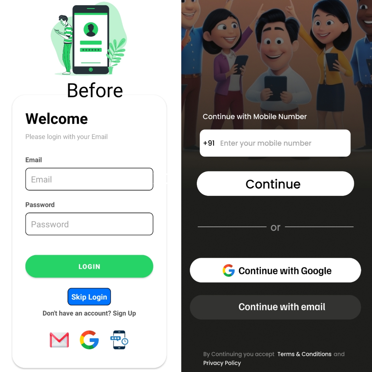 We have changed our app's login screen UI. If you have any suggestions, please comment