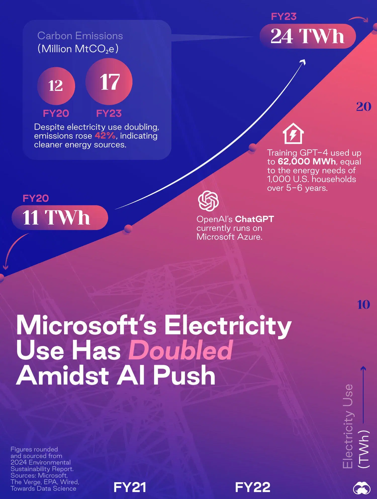 Microsoftโs electricity consumption has doubled from 11 TWh to 24 TWh in four years. ๐คฏ Image Source: https://www.voronoiapp.com/markets/The-AI-Race-is-Pushing-Microsofts-Sustainability-Goals-Further-Away-1878