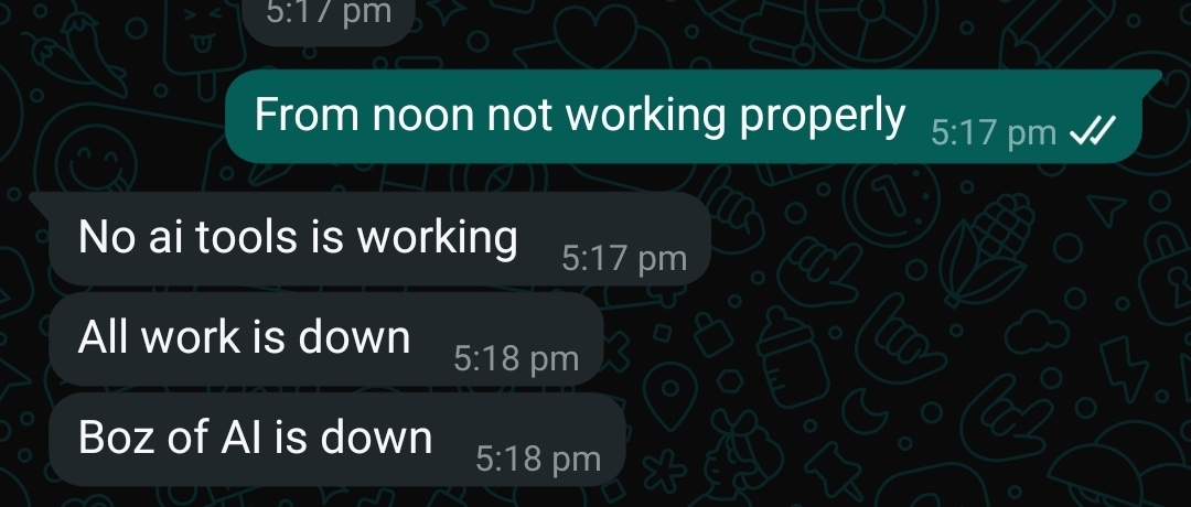 🚨 “All work is down. Boz of AI is down.” That was the message from our founder. Just one line and it hit harder than I expected. Since noon, none of our AI tools were working. Everything stalled. Every task, every process, every little thing we us