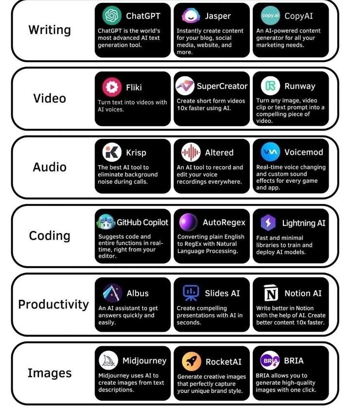 ChatGPT is old news. More than 2000 new AI tools were released in the last 30 days. Here's 20 cutting-edge AI Tools for : •Writing •Video •Audio •Coding •Productivity •Images