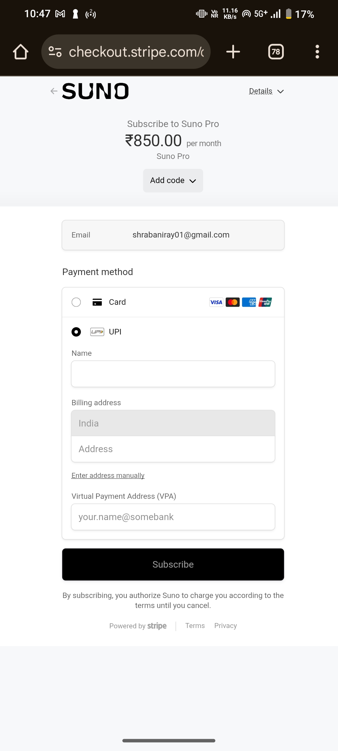 Stripe has added UPI option 😲