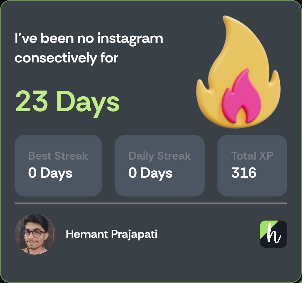 Sure let me show you one thing . I've been very consistent not using Instagram for around 23 days.