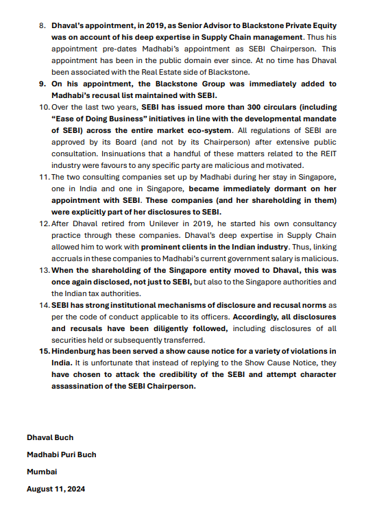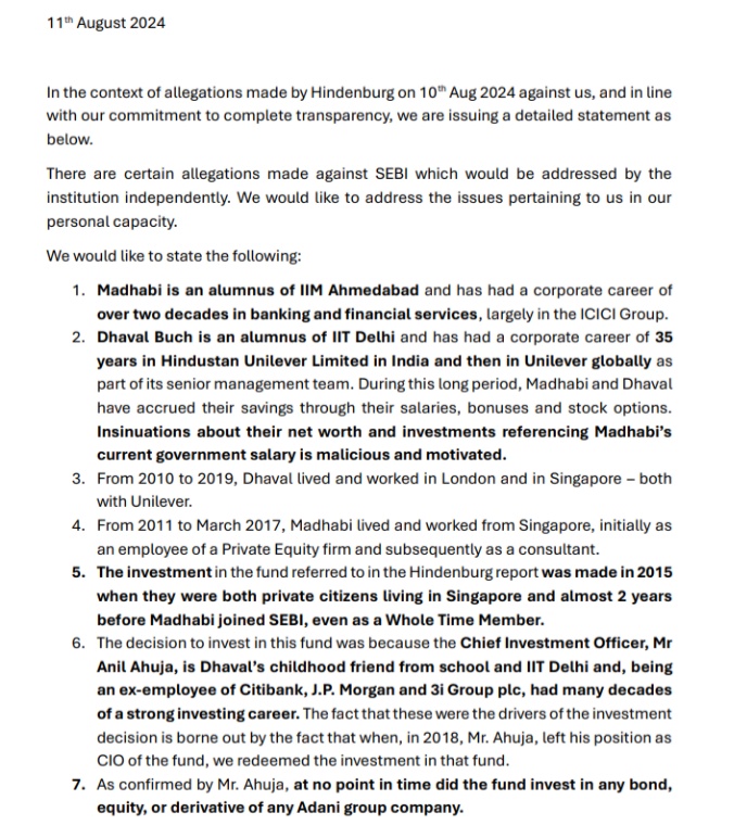 🔴 SEBI Chairperson's reply on the Hindenberg allegations