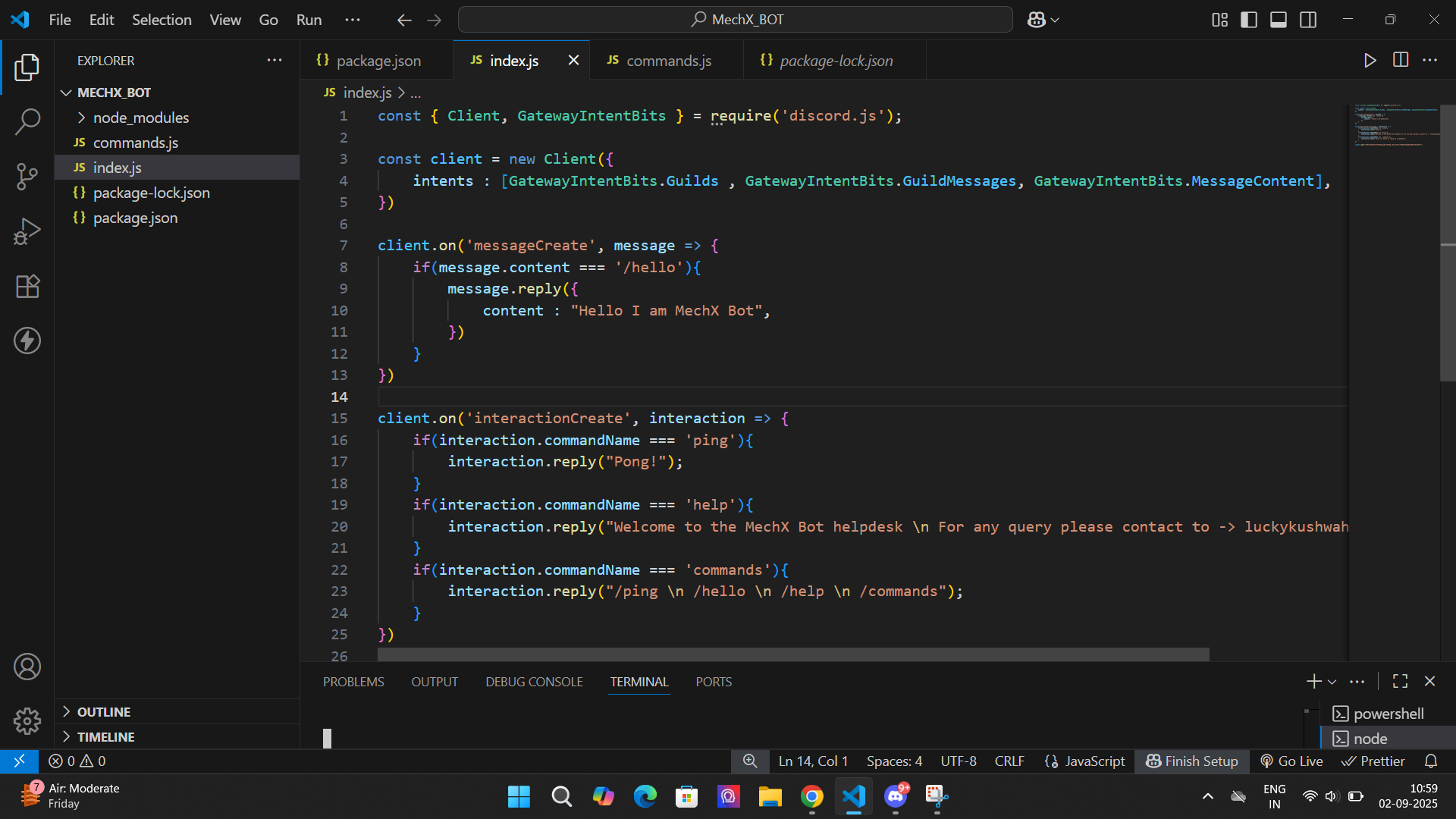 Day 25 of My Learning Journey – Building a Discord Bot with Node.js Today marks Day 25 of my coding journey, and I took a big step forward—I built my very first Discord bot using Node.js. It was an exciting experience to see the bot come alive insid