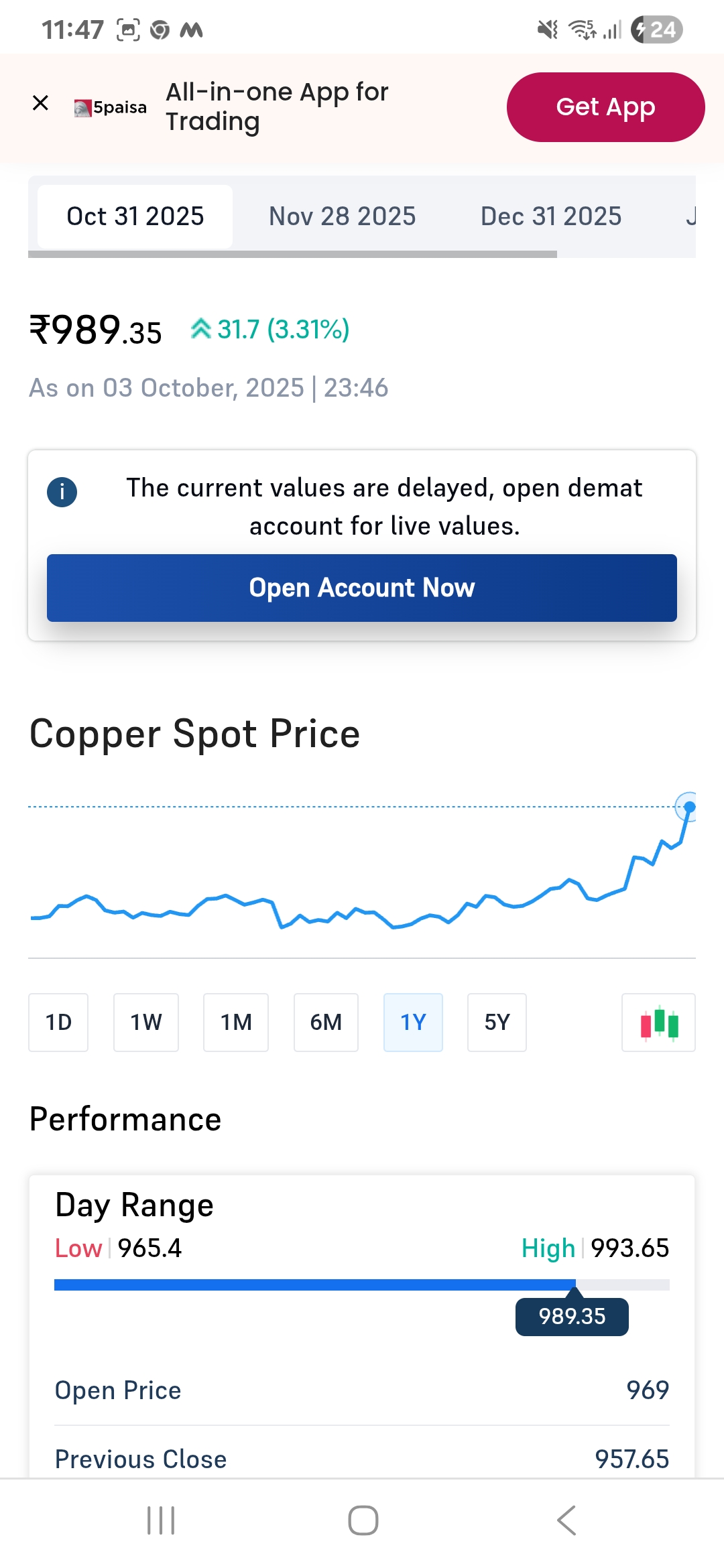 Copper: The Metal of the Future Copper prices are on the rise 📈 — currently touching around ₹989 Demand is booming – from electric vehicles, renewable energy, and infrastructure projects. Supply is getting tighter – mining challenges and limit