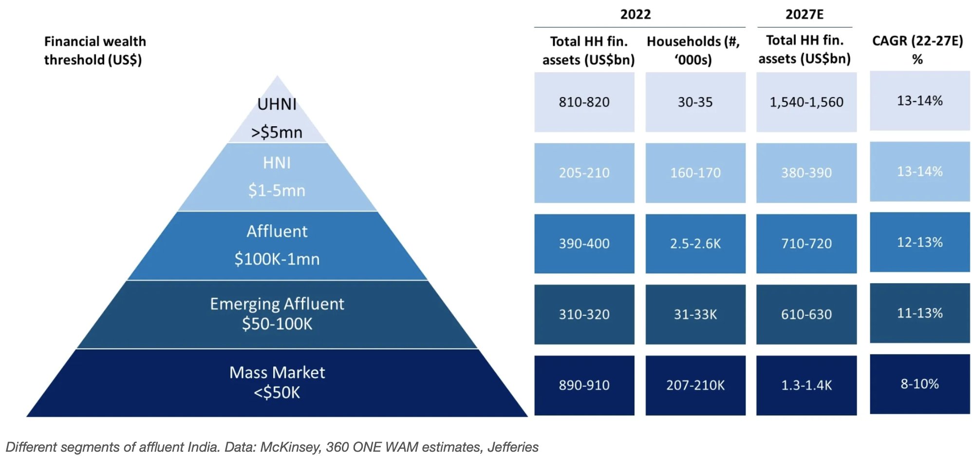 Wealth management startups in India seem to be gaining significant traction. In the past few weeks - - Dezerv raised $32 M from Premji Invest, now valued at $210 M - StableMoney closed a $14.7 M Series A - Infynite Club secured $2.6 M from Elevation Cap. - Neo raised $48 M in a Series B Soon to happen ->Centricity is reportedly eyeing $15 M from Lightspeed. ๐ฏAll are start-ups with a common focus: Capitalizing on India's growing affluent demographic ๐There's plenty of room for growth too - - Ratio of mutual fund AUM-to-GDP is at 15% versus a global average of 75% - Population of Indians with $10,000+ income to reach 100 million by 2027 (as per GS report) - Young and tech savvy Investor segment โฉDezervโs co-founder Sandeep Jethwani projects Indiaโs wealth creators will add nearly $1.2 trillion over the next five years.