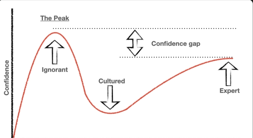 A journey from ignorance to expertise:- The more incompetent some are the better they think they are at something. The more you know the more you are aware of what you don't know.