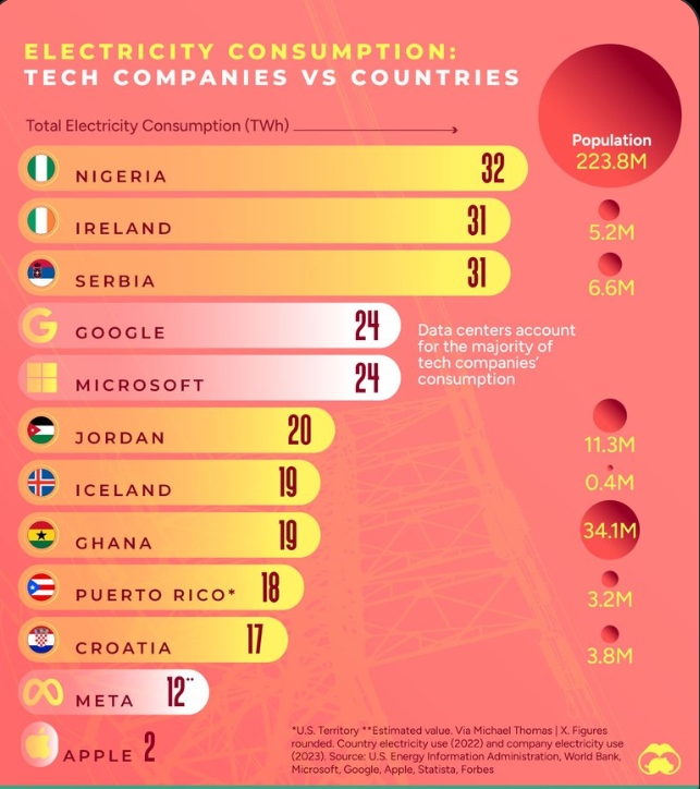 Tech companies like Google and Microsoft are using more electricity than some countries, imagine the usage of electricity when AI becomes main stream.