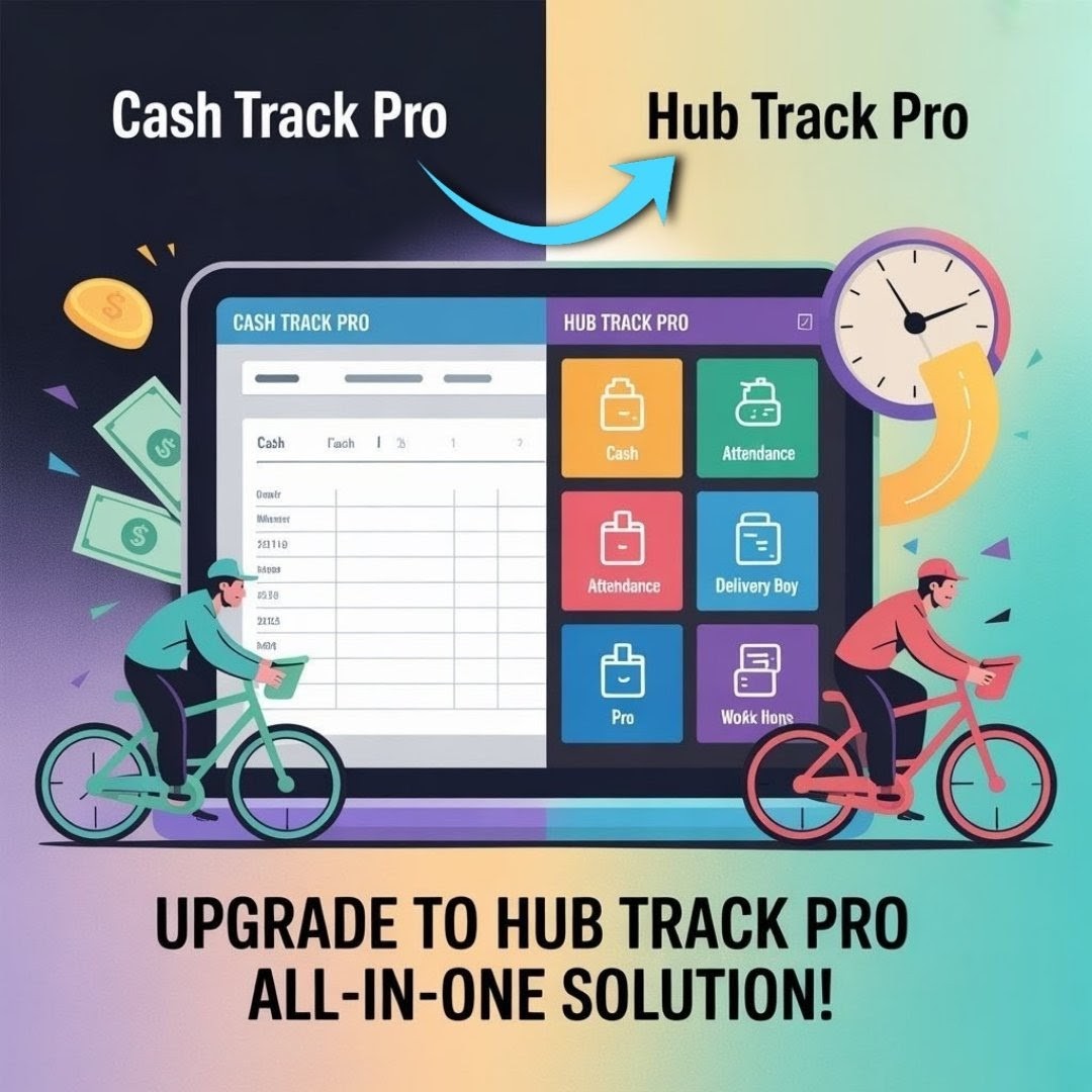 It’s upgrade time! One of our clients just leveled up from Cash Track Pro to Hub Track Pro and here’s why: ✅ Before: Only tracked cash. ✅ Now: Tracks Cash + Attendance + Delivery Boys’ Working Hours in one smart hub. Because growth needs more tha