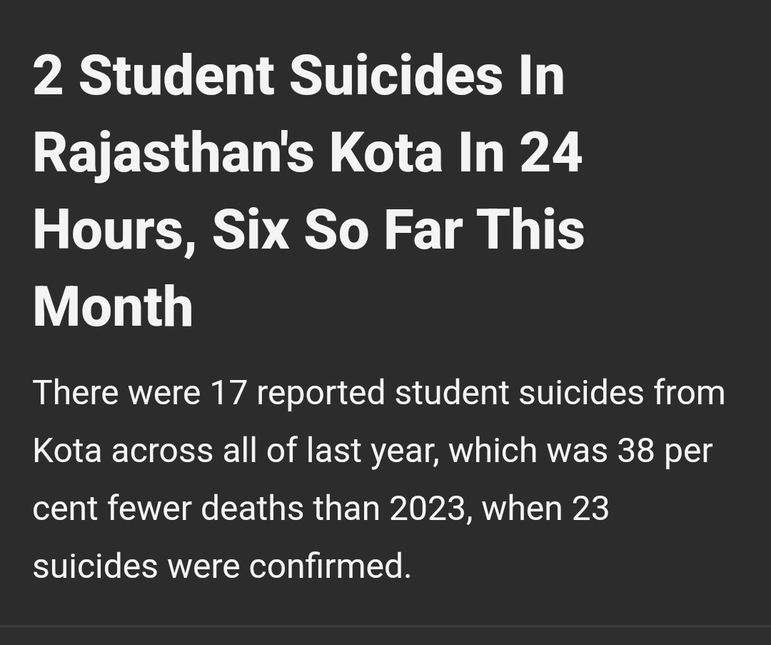 To all the startups exploiting childrenโs minds to sell products like mentorship, skill programs, and counseling: please understand that you are influencing one of the most critical periods in a childโs life. I just saw the suicide rates in Kota, and