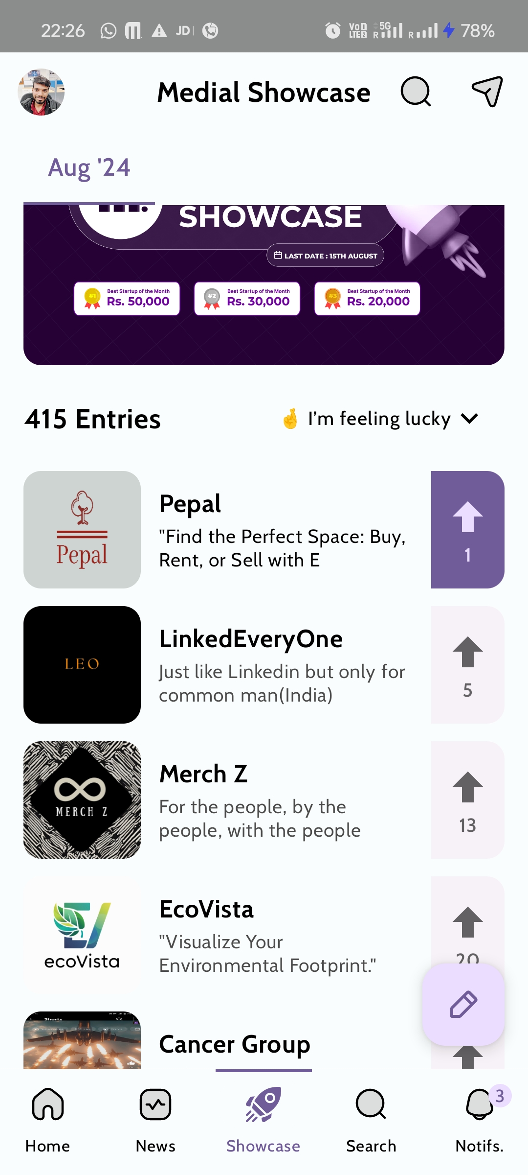 Voting will close on 31st August 11:59pm for Medialās Startup Showcase (August 2024 edition). Go vote for your favourites so that they can come up in top 10 and stand a chance to win! š„³ Results will be announced on 1st September! š„šā¤ļø