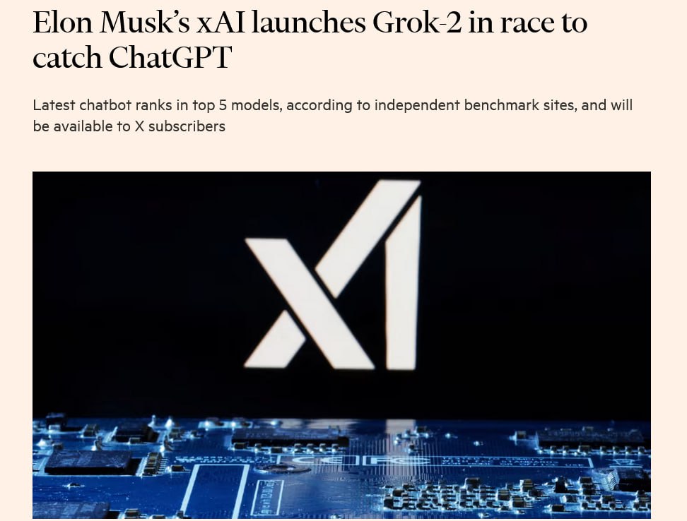 Musk's AI "Grok-2" Sets Its Sights on ChatGPT. The race between AI giants is intensifying as Elon Musk introduces Grok-2, a new chatbot from his company xAI. With this launch, OpenAI's ChatGPT might face serious competition. xAI claims that Grok-2 is rapidly closing in on market leaders like Google and OpenAI, positioning itself among the top five chatbots globally. So, what sets Grok-2 apart? It's not just about conversationโthis chatbot gets straight to the point, tackling even the most challenging questions that often stump other AIs. The battle for AI supremacy is far from over, and only time will reveal the ultimate champion. Until then, we're keeping a close watch on these developments as the age of intelligent machines continues to unfold.