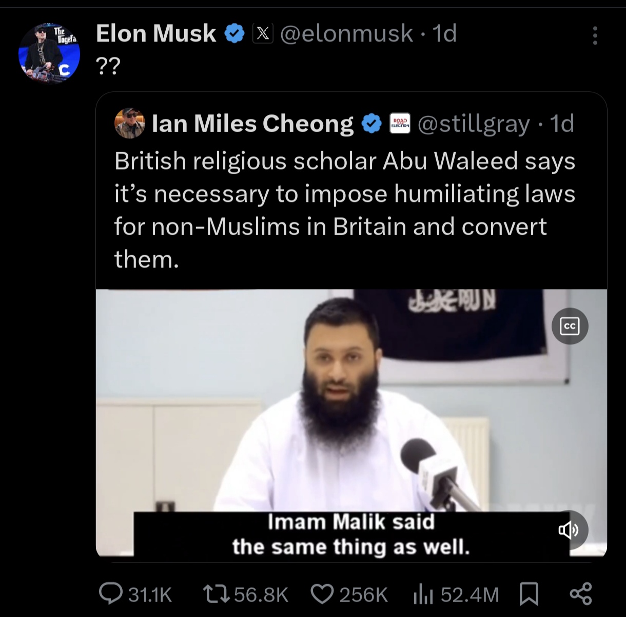 That's why people love Elon Musk, because that guy is literally awakening society against the biggest threat for humanity but Indian society doesn't want to discuss it because according to Indian intellectuals it's a hatred and religious topic . ๐ฎ๐ณ