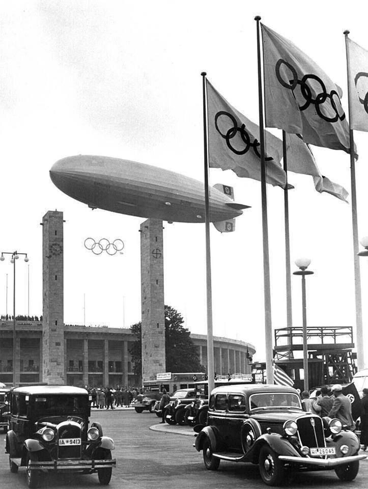 Hindenburg airship flying over Berlin during the Olympic Games, 1936.