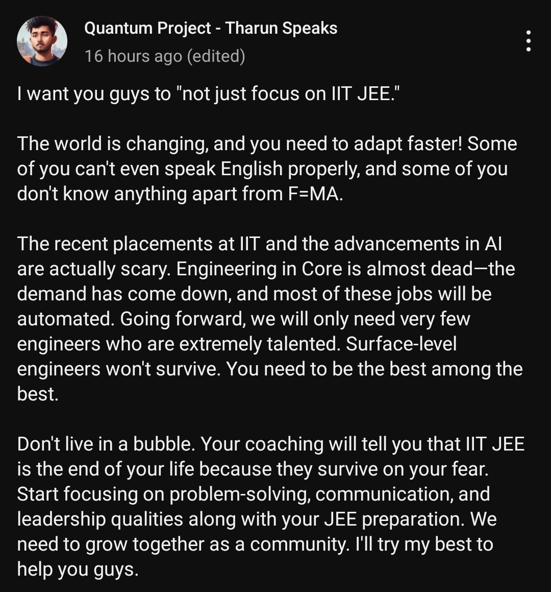 This is the same point which I wanted to raise 2 days ago. Btw this post is from a IITian itself From IIT KGP. I hope you read and understand this post.