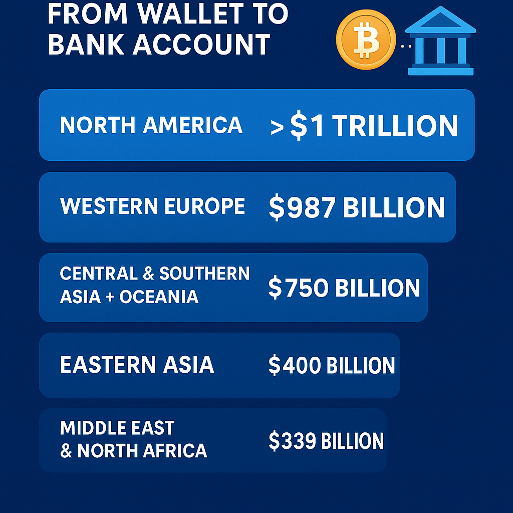 ๐ Crypto Cash-Out Powerhouses of the World! ๐ From wallets to bank accounts, over $3 trillion moved globally in just one year. ๐ North America leads, but regions like India in CSAO are rapidly catching upโproving the world is ready for a financial
