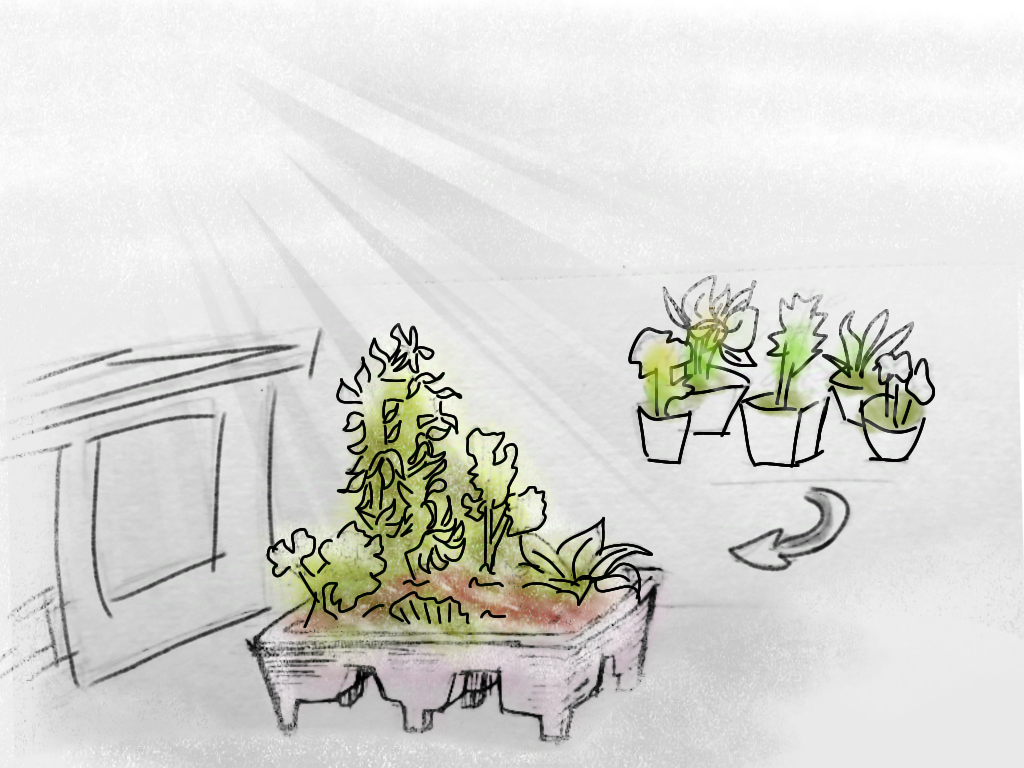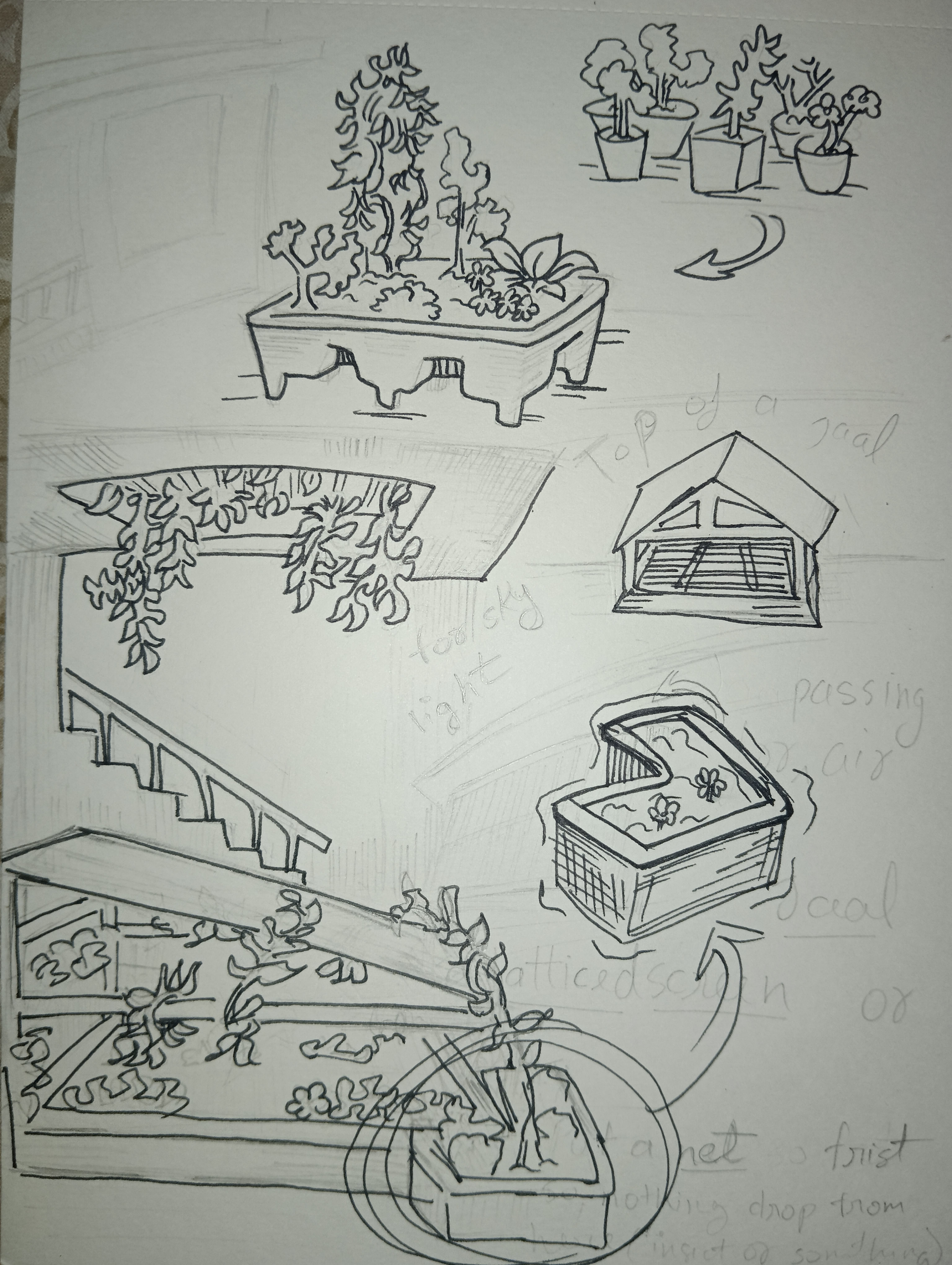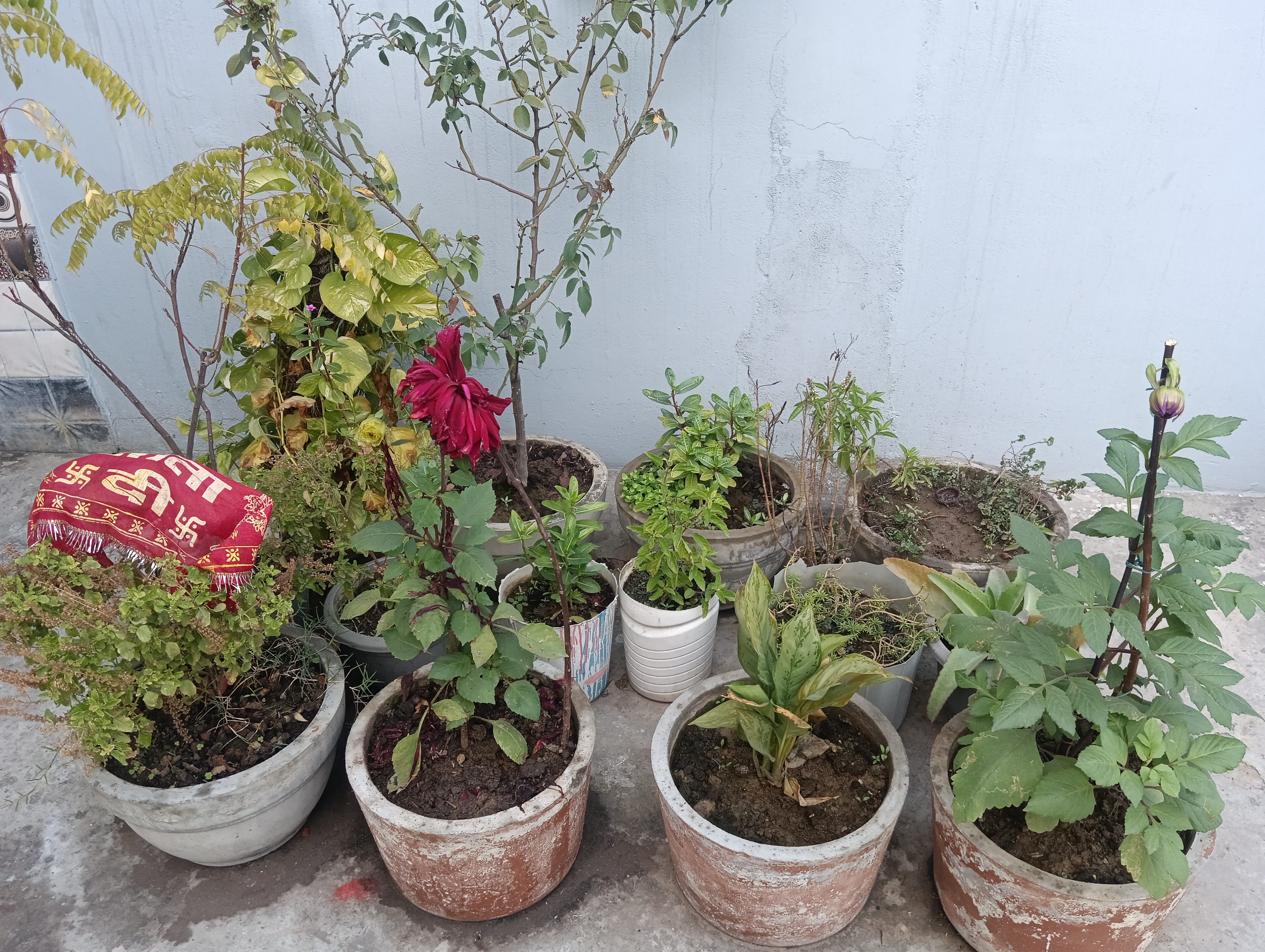 middle class homes always have this little space on the rooftop that they decorate like a garden . it creates many inconvenience - need more time to maintain - water every plant individually - take a lot of extra empty space - buying more holders