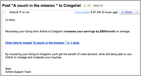 The Craigslist Coup: How Airbnb Growth-Hacked Its Way to the Top In its early days Airbnb pulled off one of the cleverest growth hacks in startup history. Faced with low traffic and brand recognition they set their sights on Craigslist a platform fl