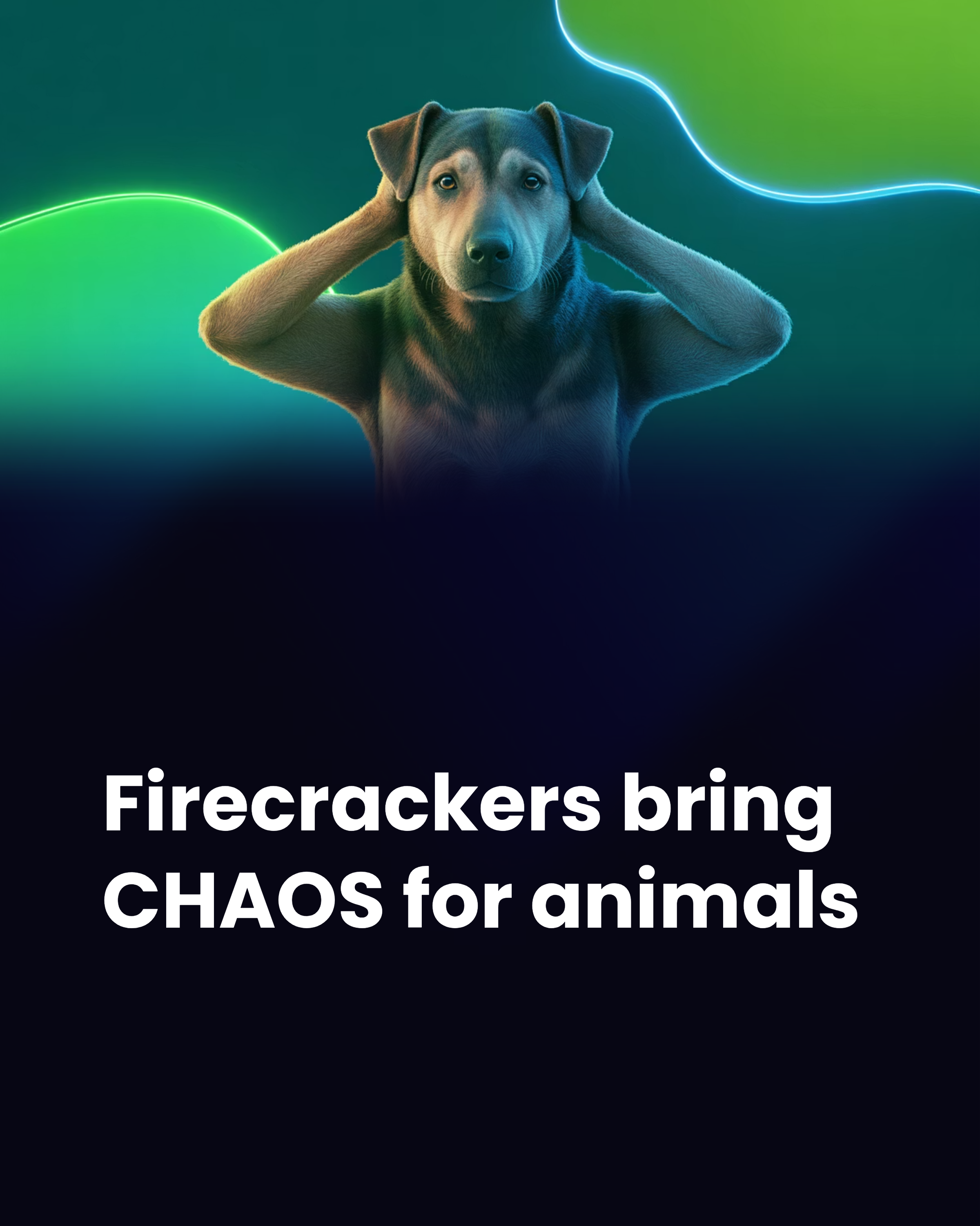 Why Diwali turns into a nightmare for animals and birds - Firecrackers bring CHAOS for animals. - The blasts are sudden and frequent. - Noise arrives WITHOUT warning. - Pets and strays feel trapped, confused, and unsafe. - Many shake, drool, hid