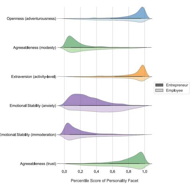 Want to become an entrepreneur? Traditionally startup success has been linked more to external factors like the industry you're building in, the economic landscape etc. But what about internal factors? Previous experiences, network connections, and team size have been spoken about, but the role of personalities? What about it? Well guess what? There was a Oxford study of 26,781 global startups which found that entrepreneurs possess more of The Big Five personality traits than the general population. Let's explore: 1. Openness (adventurousness): It measures how curious, imaginative, and open-minded you are. Entrepreneurs have a higher score here. They are more open to new experiences and taking risks compared to employees. 2.Agreeableness (modesty and trust): People with more of this trait tend to be kind, trustworthy and helpful. Employees score higher on modesty and trust. They are more likely to believe in the reliability and good intentions of others compared to entrepreneurs. 3. Extraversion: Entrepreneurs have higher energy levels and enjoy being active compared to employees. They are more assertive and social. 4.Emotional Stability (anxiety): Entrepreneurs handle anxiety well. They are generally more emotionally stable, calm and resilient compared to employees. 5. Immoderation: Employees show more impulsiveness or emotional instability in certain situations. Entrepreneurs are more delibarate. If you want to boost your chances of being a successful entrepreneur, be more open minded, handle your emotions well, be less impulsive, and try to maintain high energy levels.
