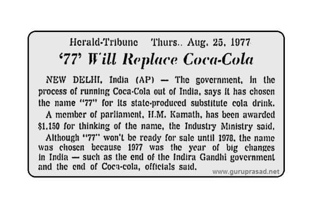 Sarkari Cola? Coca-Cola, which had established itself in India in the 1950s, faced a challenge when Indira Gandhi enacted the FERA Act in 1974, requiring foreign companies to operate under local ownership and potentially reveal trade secrets. Coca-Cola tried to navigate the Actโs requirements, but in 1977 was asked to withdraw by George Fernandes, who was Minister of Industries from the Janata Party(now BJP). With Coca-Colaโs exit, many employees were left jobless, prompting the government to introduce Double Seven, a 'swadeshi' alternative drink named after the symbolic year 1977(taunting the fall of Indira Gandhi government). It was developed by the Central Food Technological Research Institute (CFTRI) in Mysore. However, Double Seven struggled to compete with established local brands like Campa Cola and Thums Up. When the Morarji Desai government collapsed in 1979 and Indira Gandhi returned to power in 1980, government support for Double Seven weakened, leading to its decline. The product eventually faded out due to market forces, its substandard taste and strong political associations.