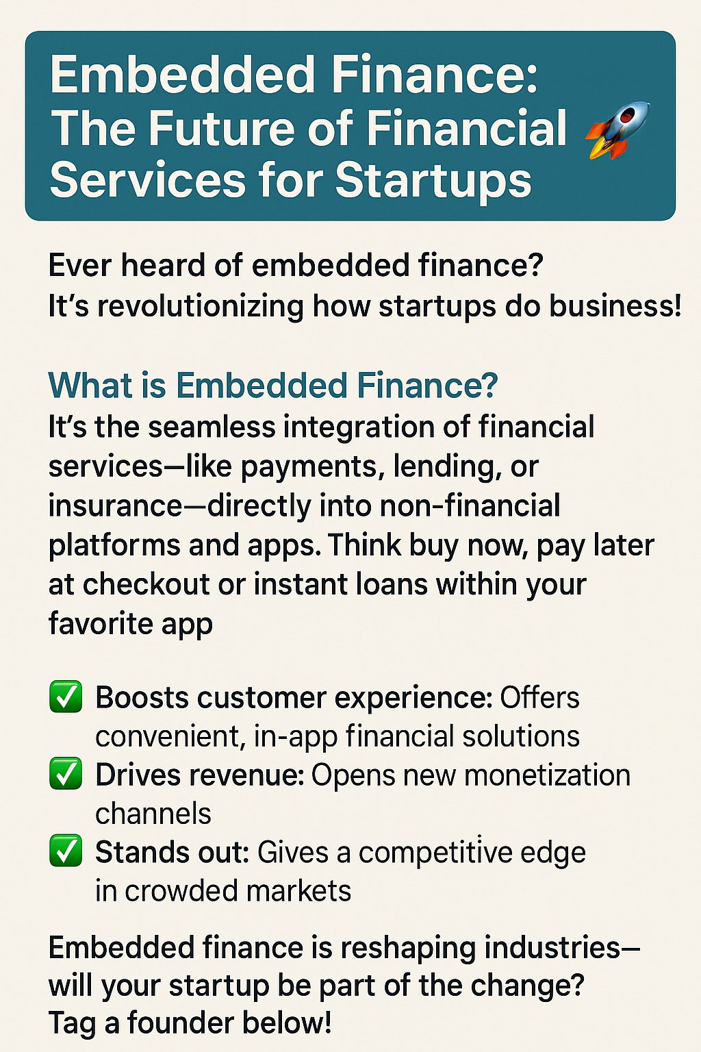 Embedded Finance: The Future of Financial Services for Startups Ever heard of embedded finance? Itās revolutionizing how startups do business! š What is Embedded Finance? Itās the seamless integration of financial servicesālike payments, lending,