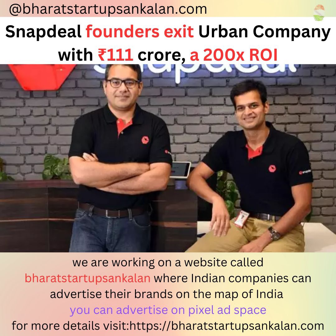 Kunal Bahl and Rohit Bansal, Snapdeal founders, exited Urban Company with 200x return on their 2015 seed investment of โน57 lakh, now worth โน111 crore. Their Titan Capital, backing over 200 startups, invested in companies like Ola and RazorPay. Meanwh