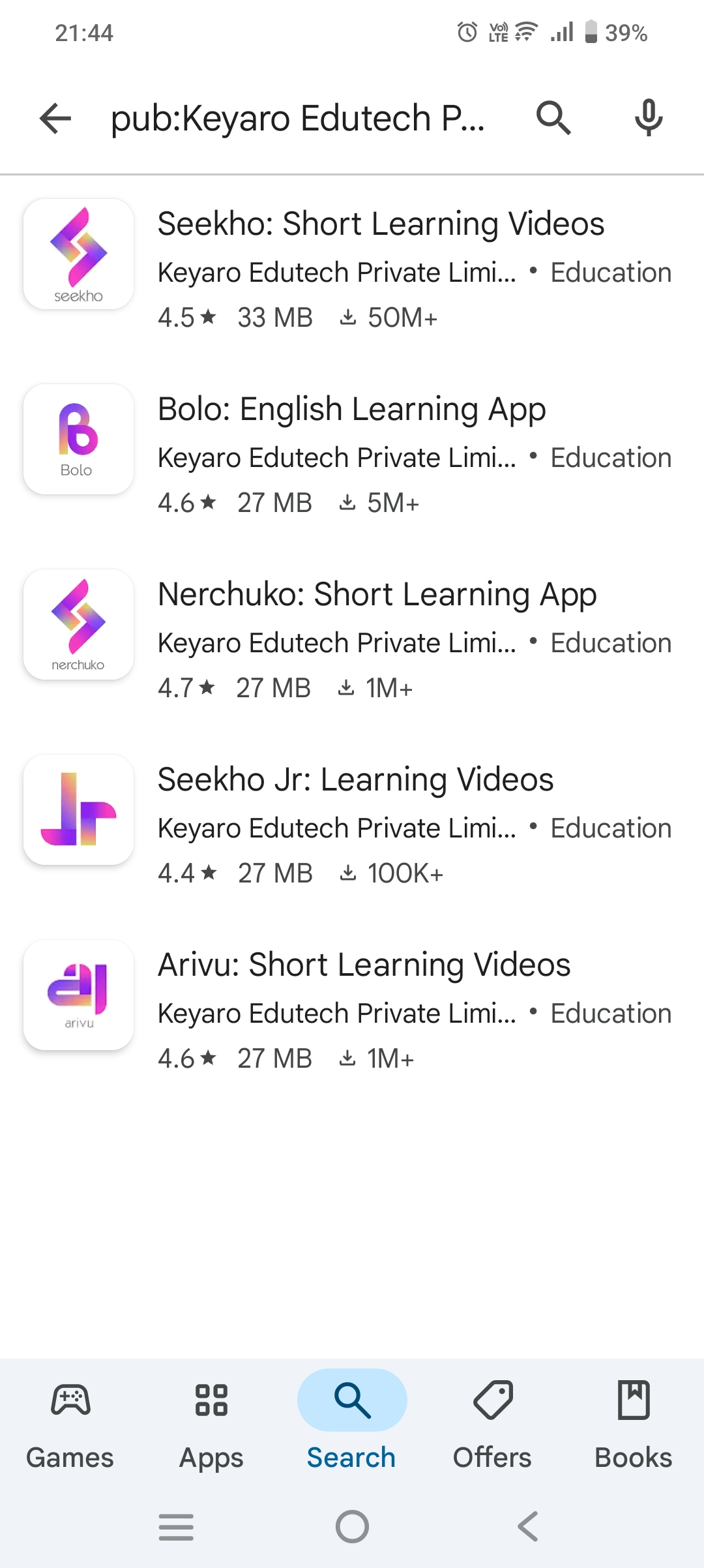 Why make four separate apps instead of making them a part of seekho app??It would make things look simpler right. Seekho jr. for kids is acceptable considering the fact that their target market is kids. But the remaining apps aren't necessarily req
