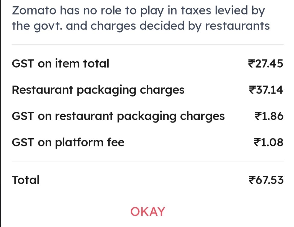 With these GST prices I am sure Zomato can't get orders from Tier 3 and some part of Tier 2 cities in India