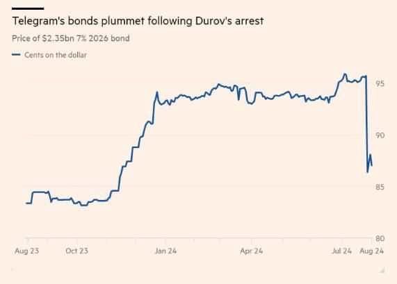 FT: The arrest of Pavel Durov puts the financial stability of Telegram at risk. 🚨 A masterpiece of foolishness was penned by "economic" media outlets at the behest of the CIA. 🕵️♂️ The article claims a "devastating collapse" of Telegram bonds following Durov's arrest and notes that the messenger ended 2023 with a loss of $174 million. It also suggests that plans for an IPO in 2026 now seem uncertain. 📉 This is a lie from start to finish. 😤 First, the "collapse" of Telegram bonds refers to a 10% drop, yet they still trade higher than in December 2023. 📊 Second, Telegram ended the year in the black—just from selling Toncoin, they brought in $244 million, and the value of digital assets on TON owned by Telegram has grown to $400 million. 💰 As for the IPO, there won't be any issues—Telegram wasn't particularly counting on Western investors anyway, and the Middle East couldn't care less about Europe's disputes. 🌐🪙