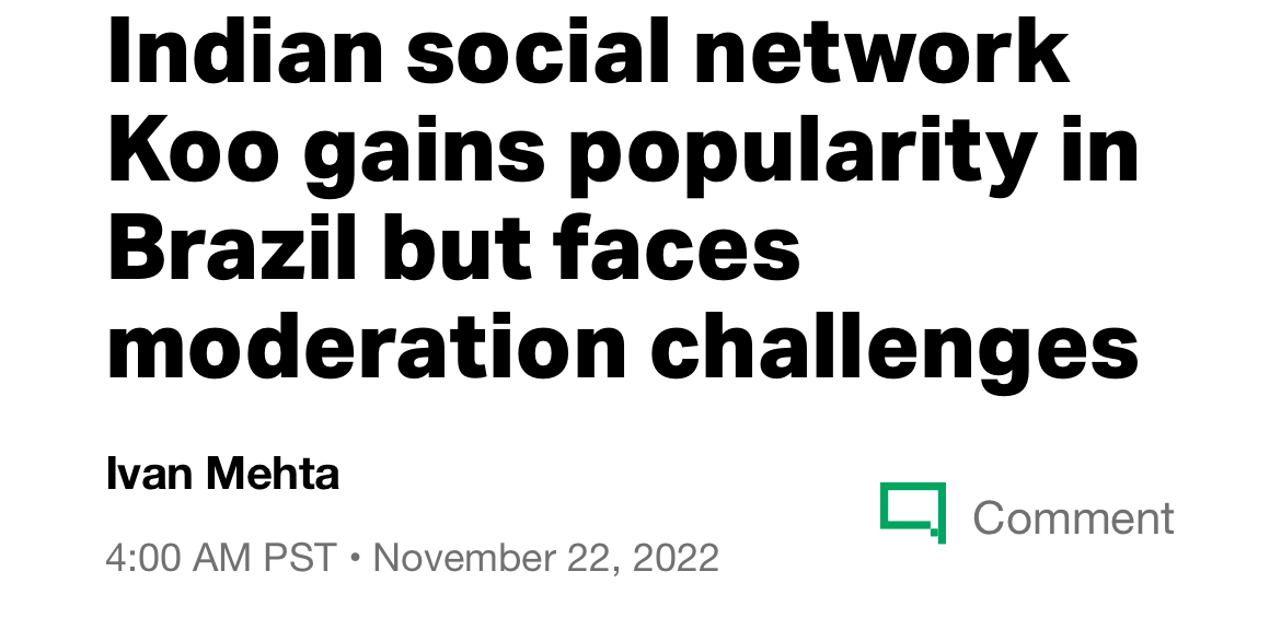 Wonder what would happen if Koo app was still alive. It was anyways for some reason famous in Brazil. It would have exploded there after X ban. Source: tech crunch - 2022