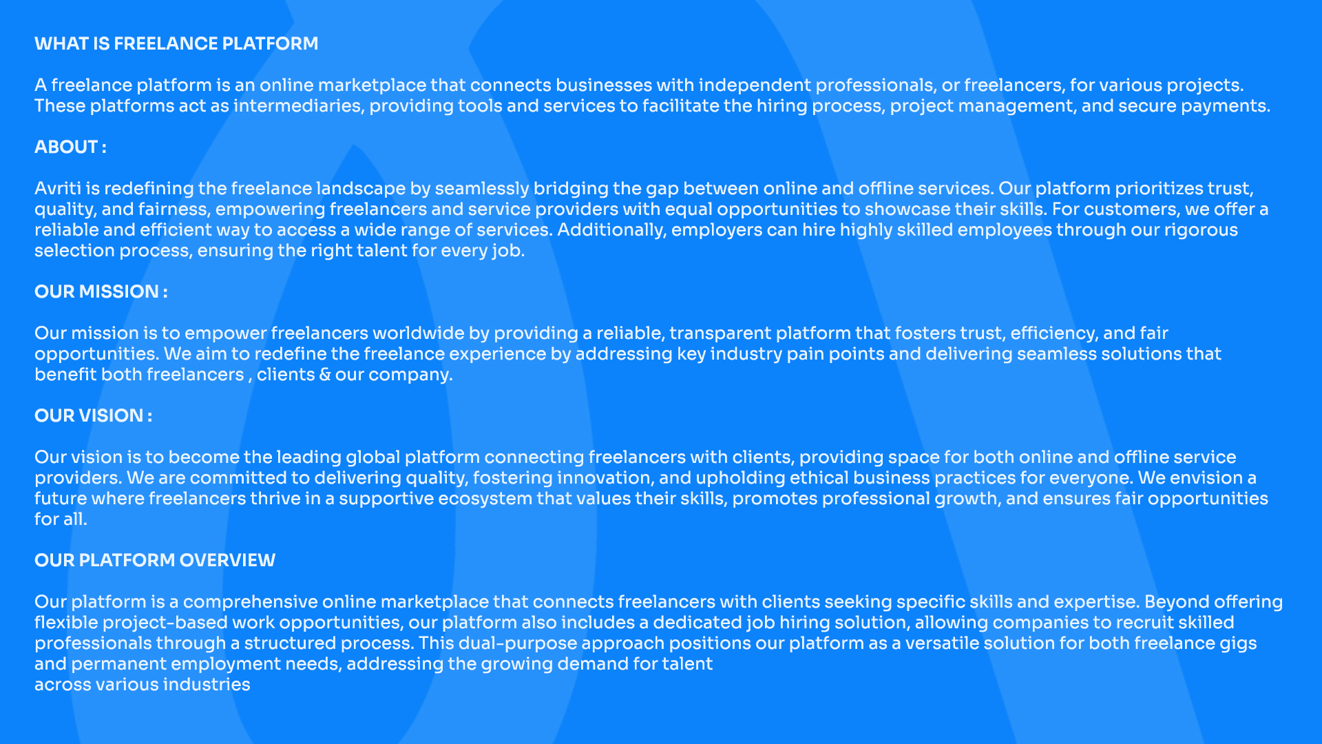 We tested and launched our pre-MVP platform, receiving positive feedback from freelancers and customers. As we rebrand ourselves and take the next step, we are preparing to launch our main platform globally soon.