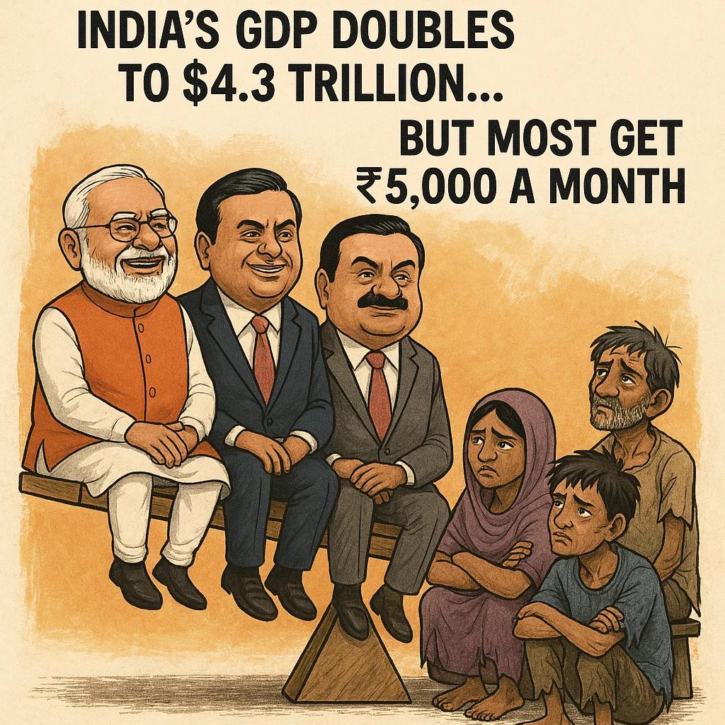 Indiaโs GDP has doubled in a decade to $4.3 trillion, ranking us 5th worldwide in 2025. ...... But take out the top 10%, and the bottom 90% are left with โน8,000 a month. The bottom 50%? Just โน5,000. Thatโs why I canโt get excited about being 5th or h