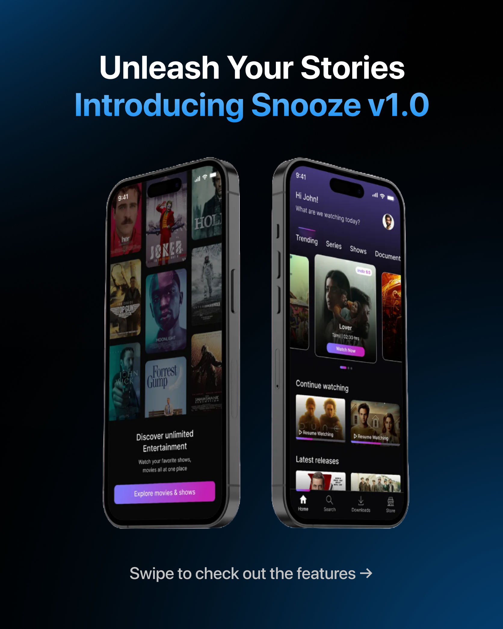 ๐ Itโs here fam! Snooze v1.0 ๐ No more scattered episodes. No more lost stories. With Snooze, you can: โจ Build your own library โจ Discover your next obsession โจ Swipe through episodes in perfect order โจ Stay tuned with smart alerts This is just v