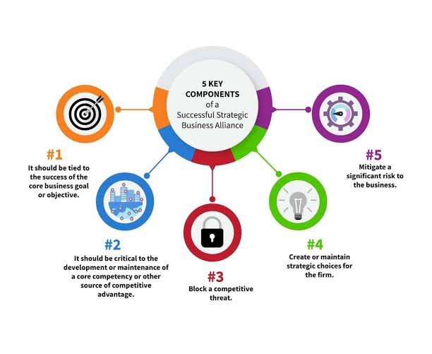 Professional business concepts — “ Strategic alliances ” Strategic alliances is the most beneficial thing for two or more companies to gain common targeted project and market share with the help of using resources of each other companies . Exam