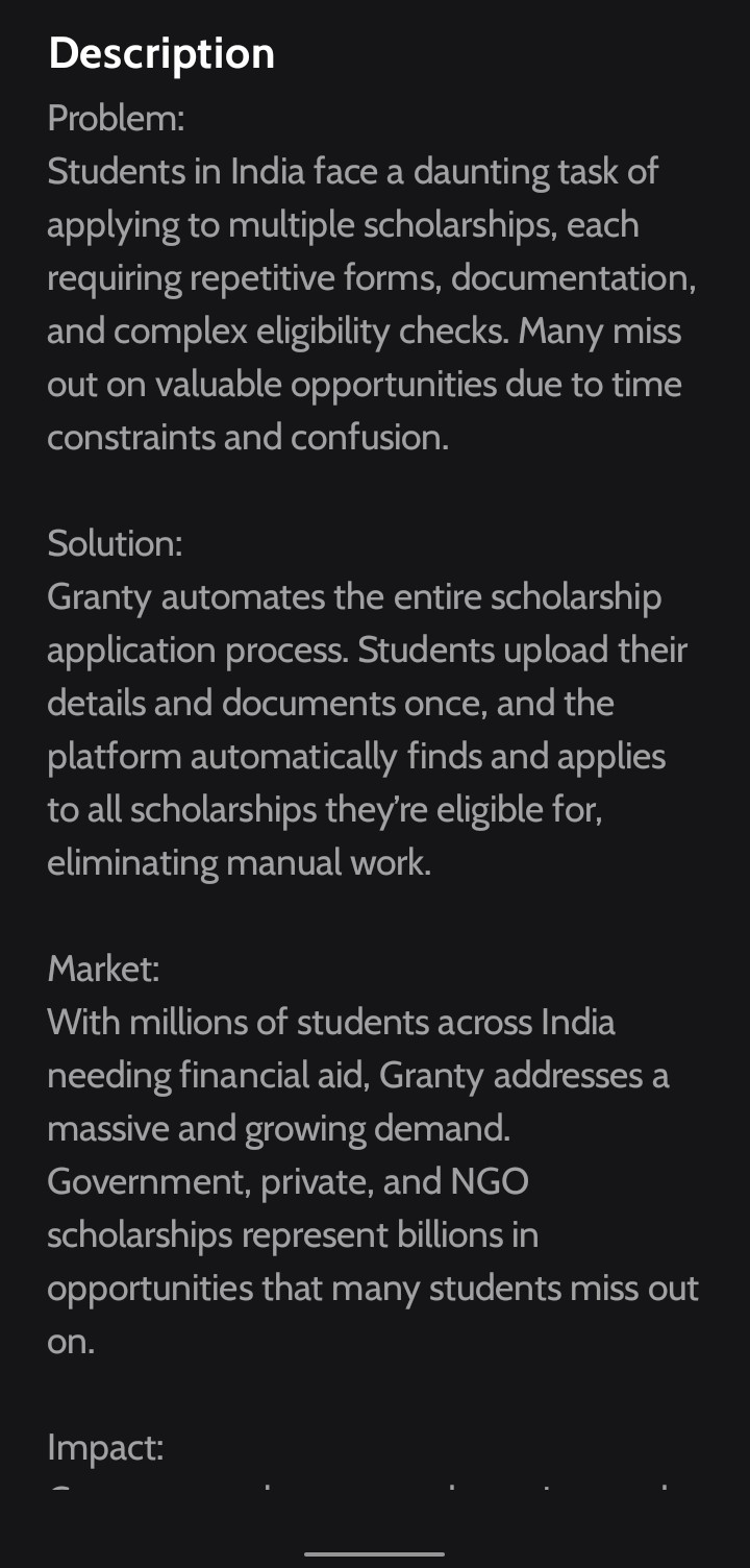 I have participated in Red Bull Basement 2024 through Medialโs Startup Showcase. with my startup Idea "granty" and would love to get your vote so that I can win. Please vote for me on this link- https://medial.app/idea/granty-54a197c404dd2