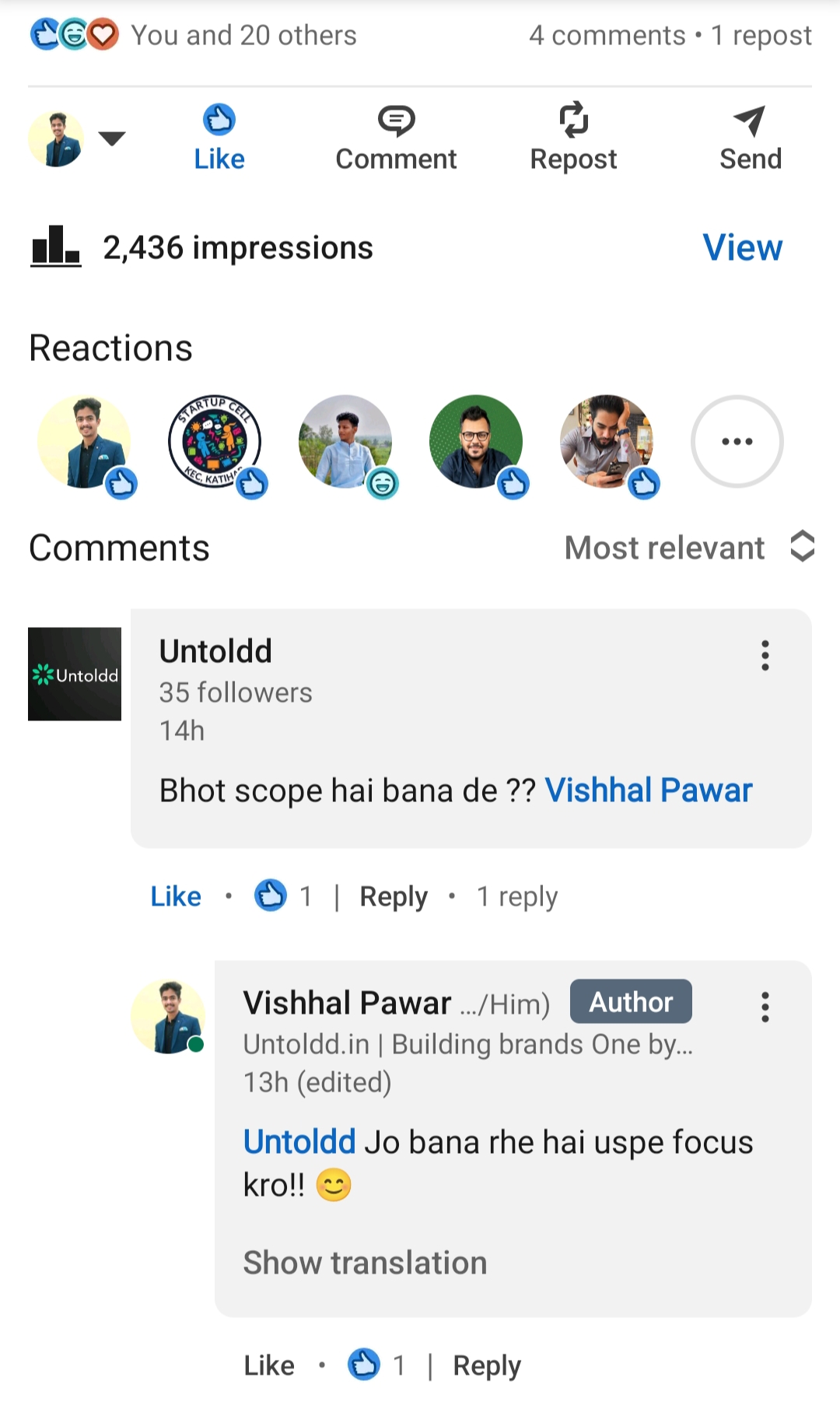 In our startup team of 5, I’ve made everyone an admin in our WhatsApp group right from the beginning.🚀 Do you know Why? Because I want each member to feel like an entrepreneur, not just an employee.🙌🏻 Building a startup isn't just about having