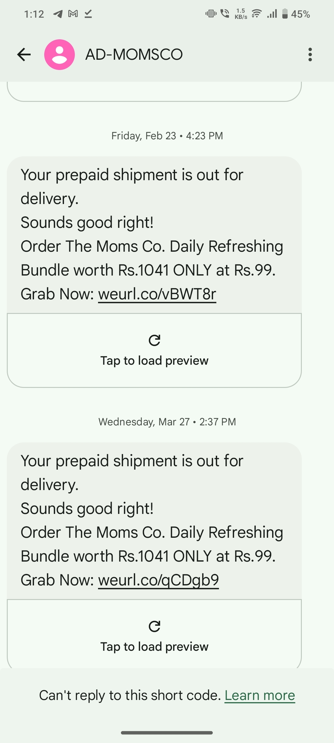What are your thoughts on Mom's Co''s marketing strategy of sending fake "Out for delivery" SMS messages that turn out to be a joke when opened? Do you find it irritating or do you think it's a creative way to engage customers? Share your opinions be
