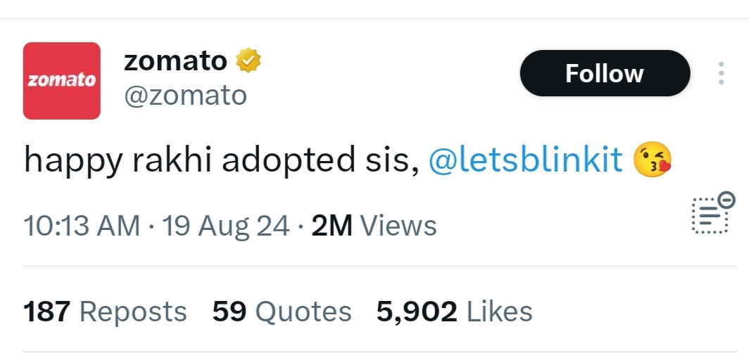 Zomato and Blinkit’s Social Media Strategy: How They Stay on Top 🚀 Zomato and Blinkit have mastered social media engagement. Here’s how they keep winning: 1. Humor and Relatability 😂 While most brands aim for a professional tone, Zomato & Blinkit take a different route by using humor, memes, & realtime trends to connect with their audience on a more personal level. Their light-hearted posts are highly shareable and relatable, making them stand out. 2. Real-Time Marketing ⏰ Zomato & Blinkit quickly hop on trending topics. Whether it's a viral meme,popular event or cultural moment,they create content around what's hot,keeping users engaged. 3. User-Generated Content 📸 Zomato often shares customer reviews, food photos, and creative posts. Blinkit encourages users to share unique shopping experiences, fostering a sense of community. 4. Simple & Clean Visuals 🎨 Both brands use clean visuals with short, impactful text. This keeps the content digestible & visually appealing.
