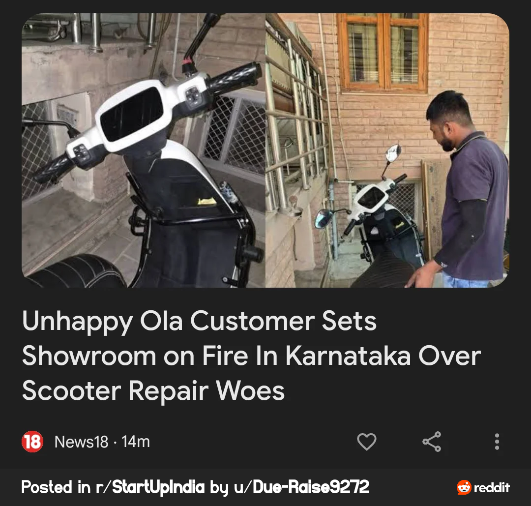 Agg laga dia š„ Is OLA that bad ? What's your experience with OLA ? or any Electric Vehicle ? i personally don't like EVs - Doesn't feel the Roar š. Aisa lagta hai toy chala rha hu .